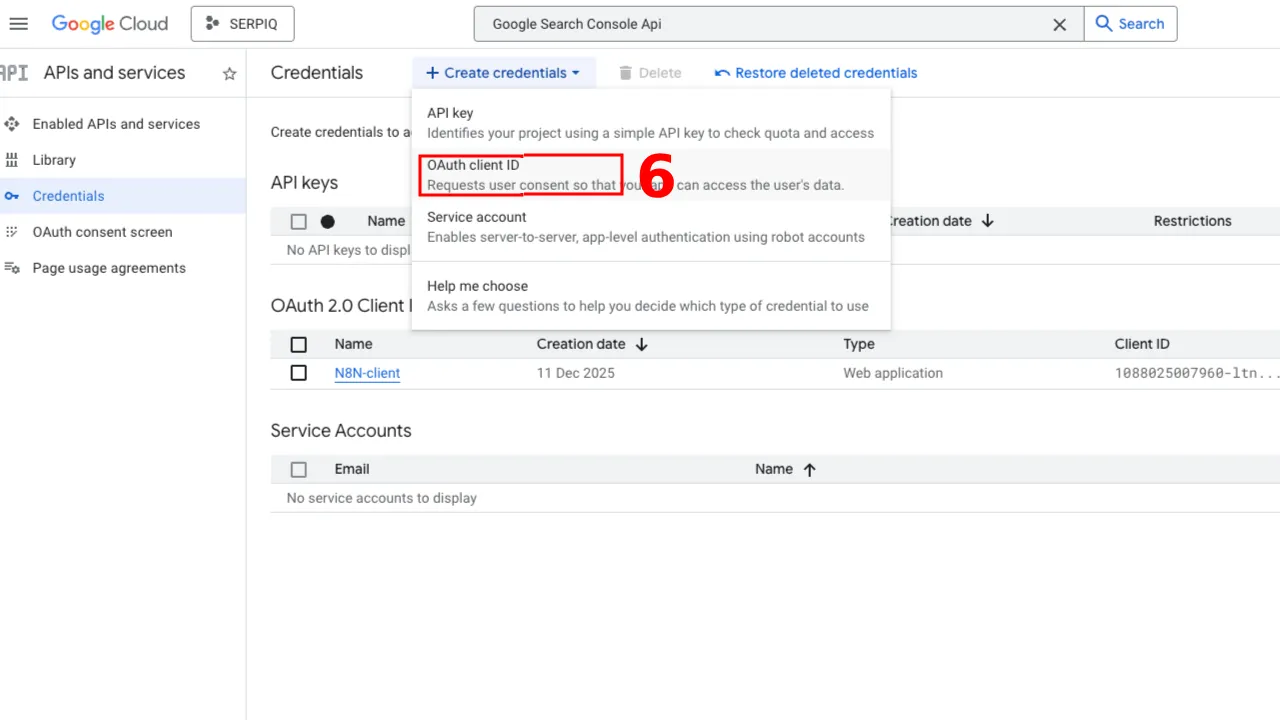 Google Cloud Console — Credentials → Create Credentials → OAuth client ID (6).