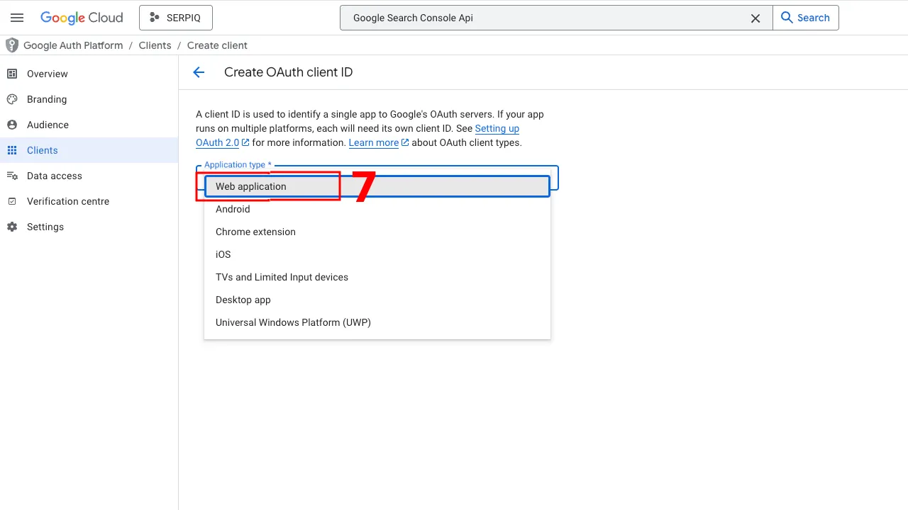 You must create an OAuth Client ID (type: Web application) in Google Cloud Console and paste the Client ID and Client Secret into SerpIQ → Settings.